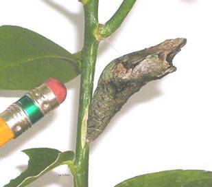 Giant Swallowtail caterpillars feed primarily on citrus plants, prickly ash, and hoptrees. They are known as Orange Dogs to citrus farmers because of their destructive capabilities.