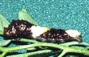 The caterpillar has two effective adaptations for defense against birds. The first is a reddish osmeterium that is extended when the insect is provoked, releasing foul-smelling pheromones thought to deter birds. The larva are also camouflaged to resemble bird droppings and are sometimes called Dirty Dogs.